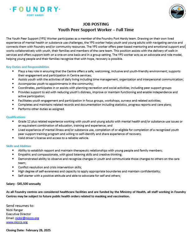 • 24 hour Vancouver Island Crisis Line 1-888-494-3888