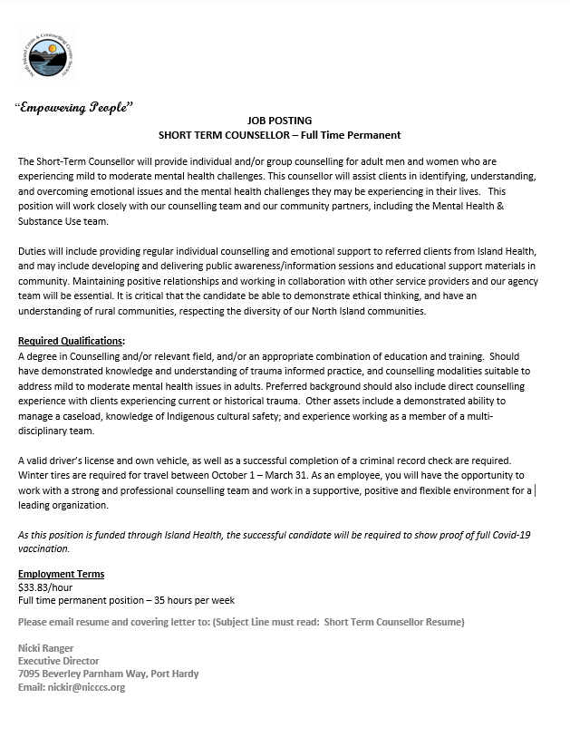 • 24 hour Vancouver Island Crisis Line 1-888-494-3888